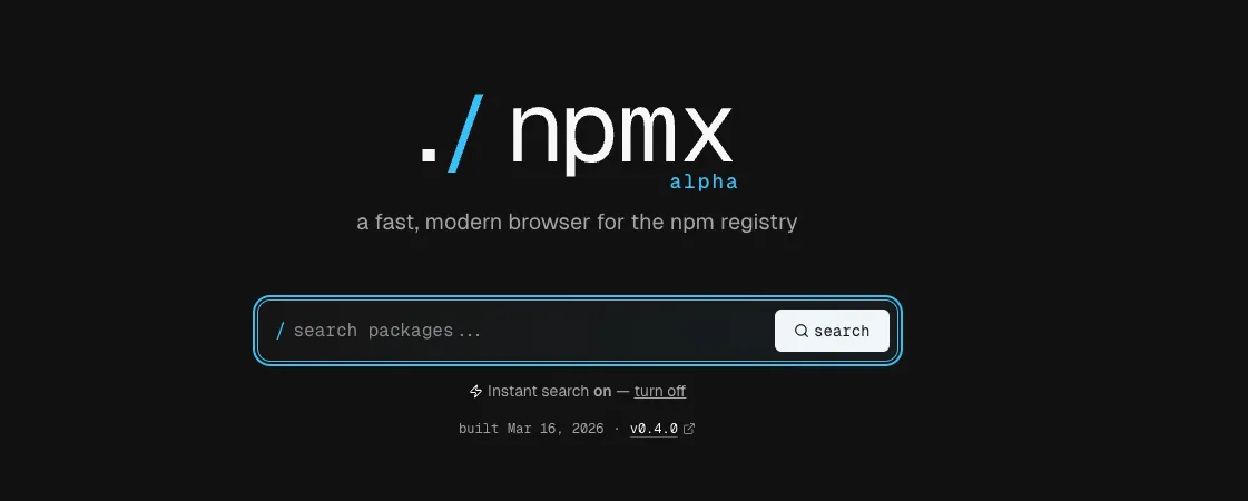 一个快速、现代的npm注册表浏览器,支持即时搜索和包信息浏览,是访问npm生态的更好方式。